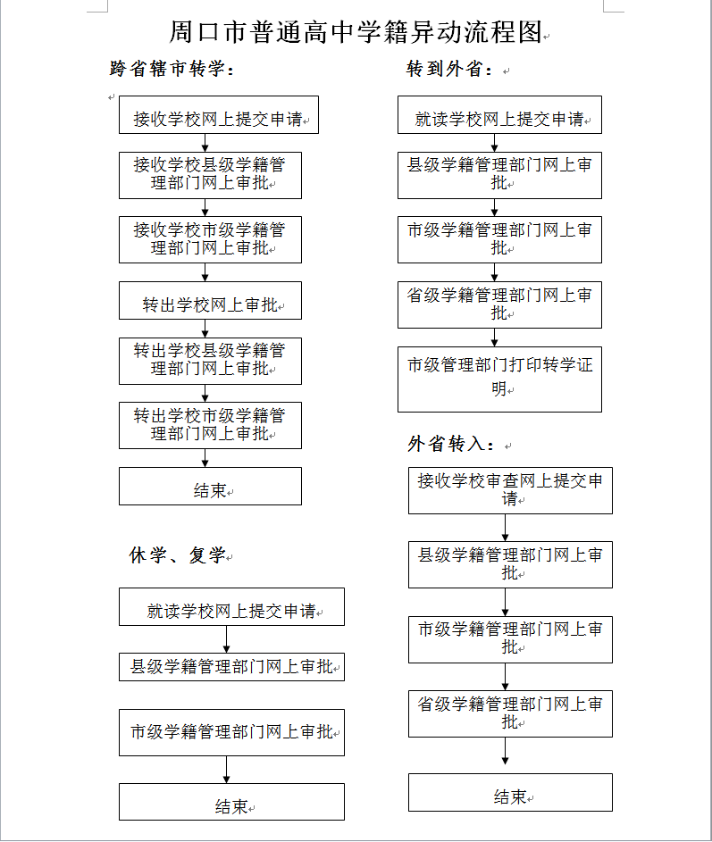 周口市普通高中学籍异动流程图