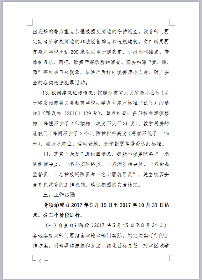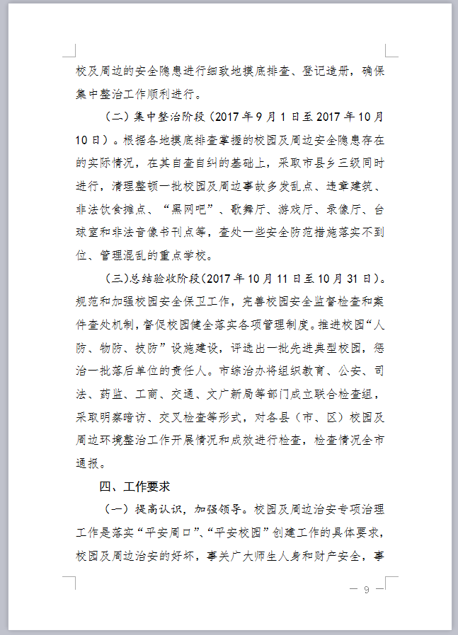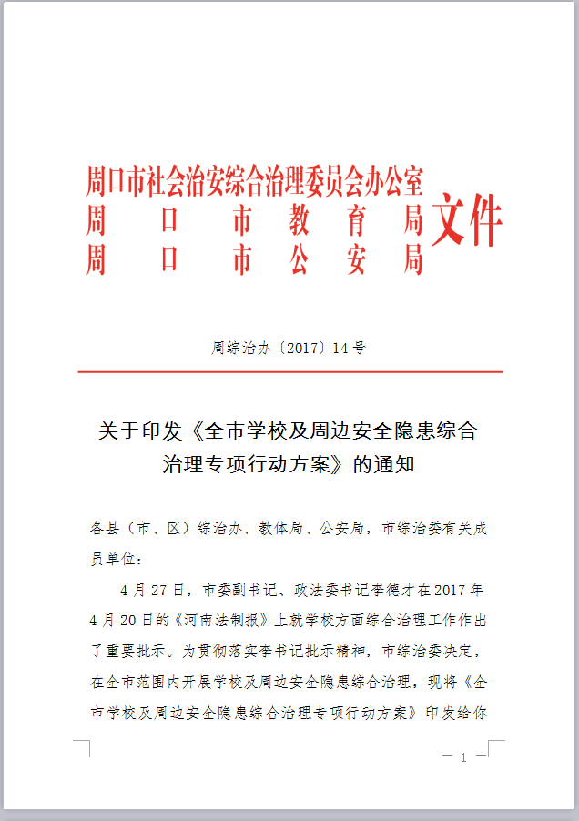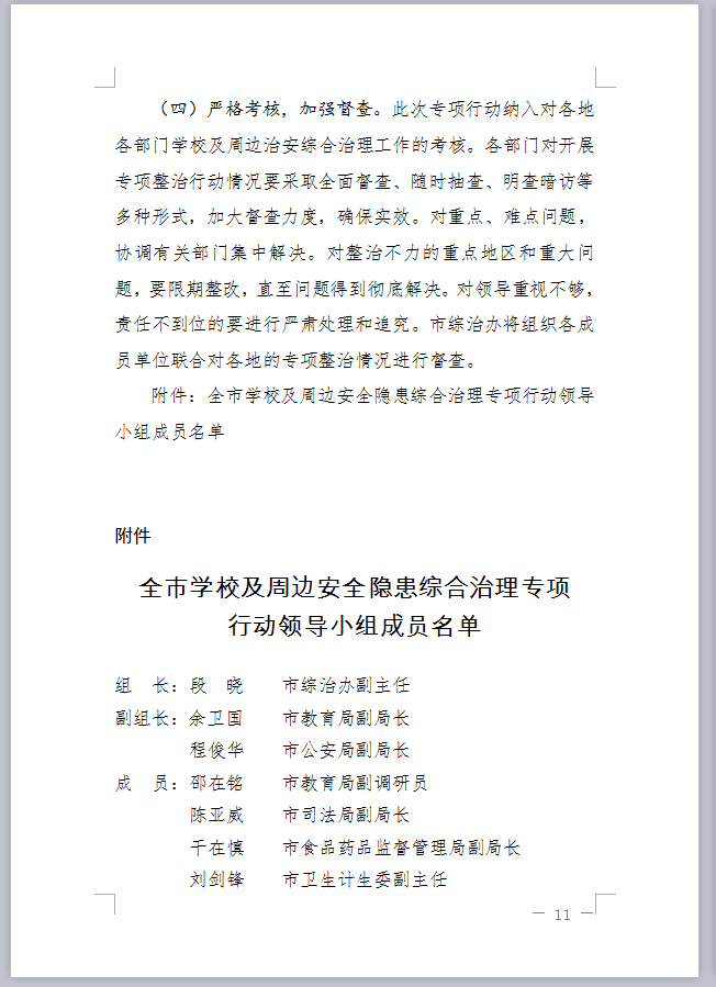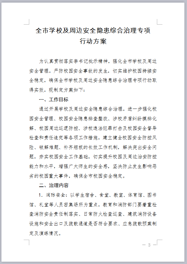 关于印发《全市学校及周边安全隐患综合治理专项行动方案》的通知