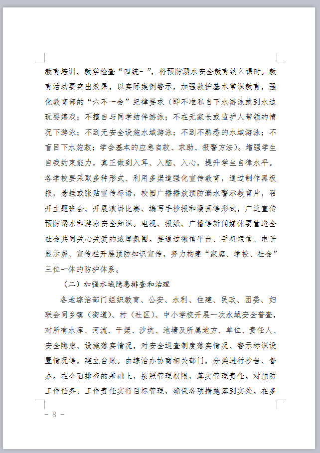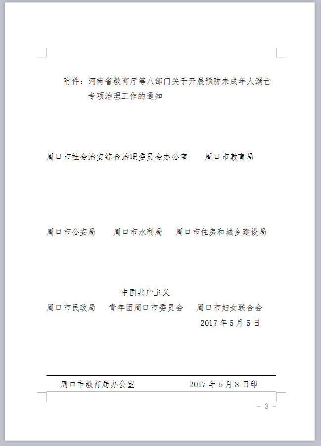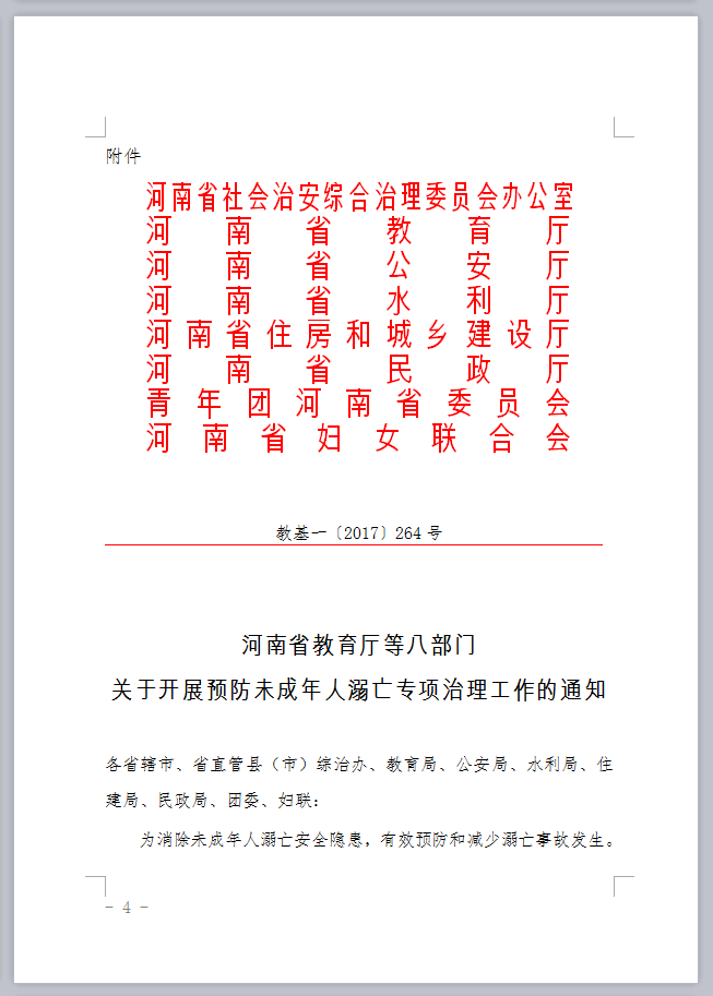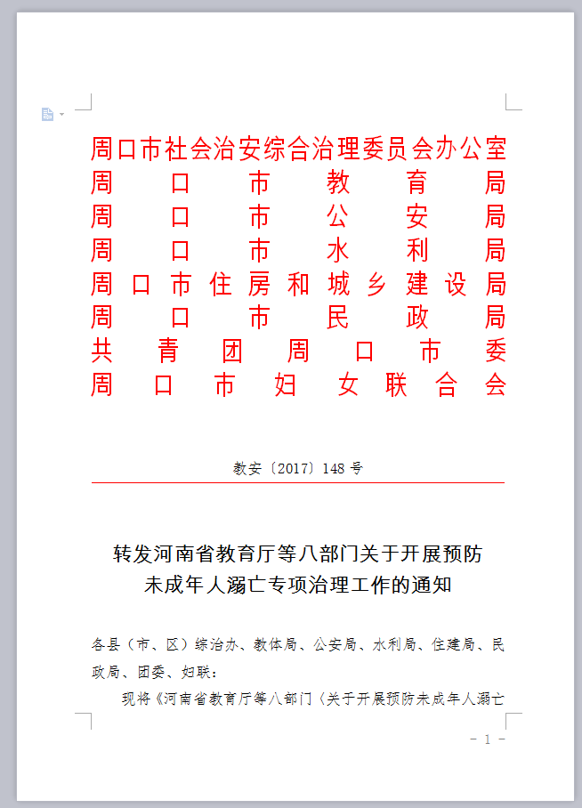 转发河南省教育厅等八部门关于开展预防未成年人溺亡专项治理工作