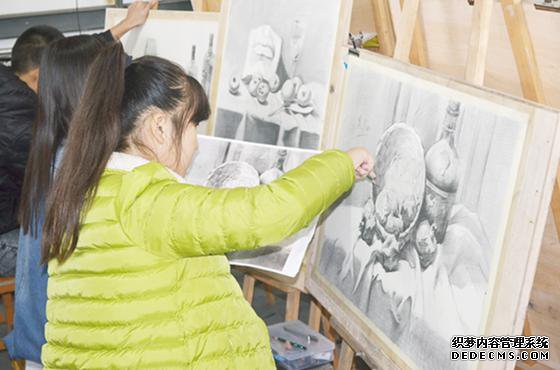 郸城三高美术专业的学生在认真进行素描临摹